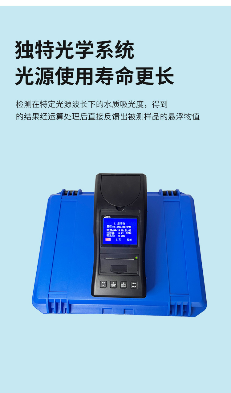 懸浮(fu)物水(shui)(shui)質(zhi)檢(jian)測儀可(ke)快速準確(que)測定地表水(shui)(shui)、地下水(shui)(shui)、城市污水(shui)(shui)及工(gong)業廢水(shui)(shui)中(zhong)懸浮(fu)物指標(biao),濃(nong)度(du)(du)(du)直(zhi)讀;可(ke)廣泛(fan)用(yong)(yong)于水(shui)(shui)廠(chang)、食品、化工(gong)、冶金(jin)、環(huan)保(bao)及制藥(yao)行業等部門。儀器(qi)是由單個的固(gu)定波長固(gu)定用(yong)(yong)途的分光(guang)光(guang)度(du)(du)(du)計(ji)糅合而成的,采用(yong)(yong)分光(guang)光(guang)度(du)(du)(du)法原(yuan)理對各參數進行測量(liang),在儀器(qi)中(zhong)建立不同參數的濃(nong)度(du)(du)(du)顯色程度(du)(du)(du)與(yu)吸光(guang)度(du)(du)(du)的線性曲線,儀器(qi)通(tong)過對顏色的辨別,得出被測水(shui)(shui)樣的濃(nong)度(du)(du)(du)。本儀器(qi)采用全中文菜單,操作簡單易懂,使用方便快速測量準確度高。