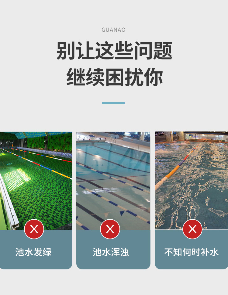 4、檢測精準(zhun),項目齊(qi)全。貫奧(ao)泳池(chi)水質監測儀器設備可檢測12個常規(gui)項目,參數可自由定制。